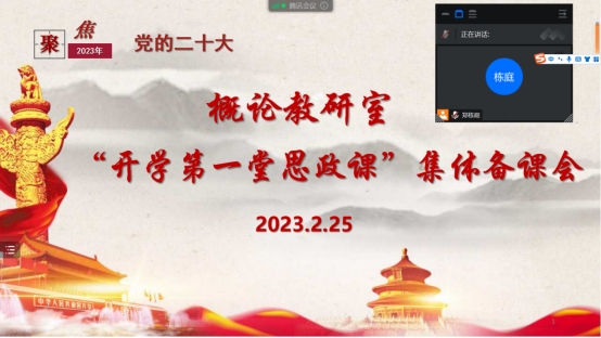 为深入贯彻习近平新时代中国特色社会主义思想,学习党的二十大精神,落实好省教育工委、省教育厅关于组织全省高校上好2023年春季学期“开学第一课”的通知要求,概论教研室于225日召开“开学第一课”集体备课会,会议由副院长郑栋庭主持,全体毛泽东思想和中国特色社会主义理论体系概论课授课教师参加会议。