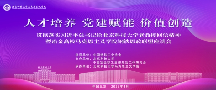为深入贯彻习近平总书记重要回信精神,搭建冶金高校Williamhill中文合作交流平台,合力打造冶金行业特色鲜明的Williamhill中文,4月19日—20日,由中国冶金职工思想政治工作研究会和北京科技大学联合主办、北京科技大学Williamhill中文承办的钢铁思政联盟座谈会在北京召开,我校Williamhill中文党总支书记刘占文、院长贾楠、副院长郑栋庭应邀参加会议。