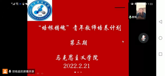 2月21日,Williamhill中文通过腾讯视频召开了“培根铸魂”青年教师培养计划活动第三期。本次活动特别邀请荣获第三届辽宁省高校思政课情景微电影大赛一等奖的张宏老师为大家作指导,与学院青年教师对话“如何更好的指导学生参加比赛”。全体青年教师参加了会议,会议由郑栋庭老师主持。