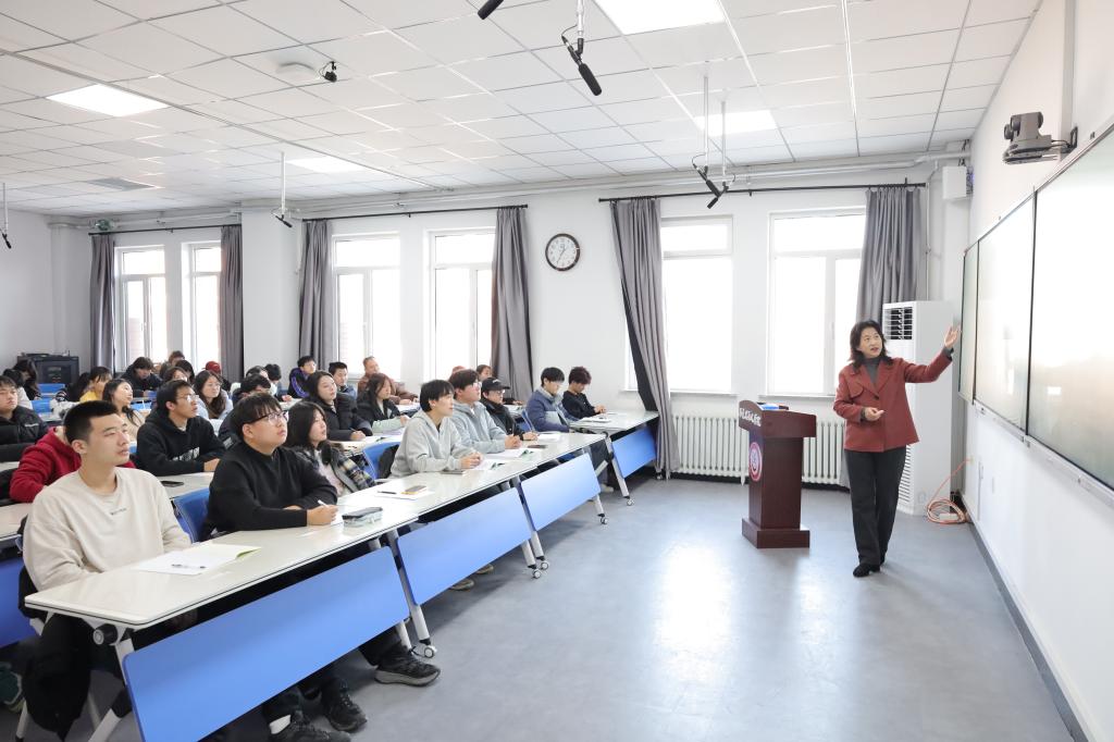 课堂尾声,赵毅与学子们亲切互动。关于“新时代青年如何践行井冈山精神”,她寄语全体同学:一要筑牢理想信念之基,将个人追求融入国家发展大局与东北振兴实践,让“精神之钙”滋养成长之路;二要坚持实事求是之道,在学术研究中求真务实,在社会实践中脚踏实地,不迷信权威、不脱离实际;三要永葆艰苦奋斗之风,在学习上刻苦钻研,在生活中勤俭节约,以坚韧意志应对各种挑战;四要践行群众路线之本,主动走进基层、倾听民意,在服务人民中实现人生价值,让井冈山精神与东北抗联精神在新时代绽放新光芒。