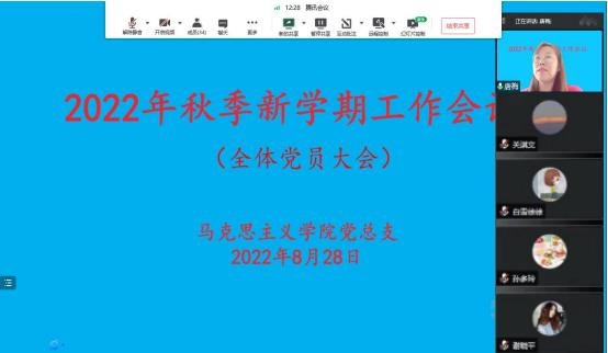 学院党总支组织委员、学院办公室主任薛忠祥传达了学校《关于做好2022年秋季学期开学相关工作的通知》,并对疫情防控提出要求。