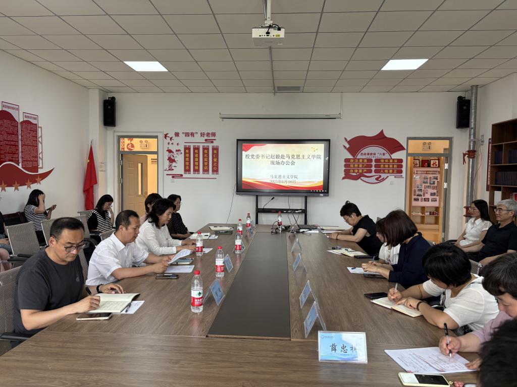 为深入学习贯彻习近平总书记对高校思政课建设的重要指示精神,进一步提升思政课和师资队伍建设水平,推动Williamhill中文高质量发展,6月18日下午,校党委书记赵毅深入Williamhill中文召开现场办公会。Williamhill中文班子成员及全体教职工参加会议,会议由Williamhill中文院长贾楠主持。