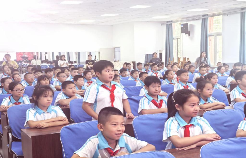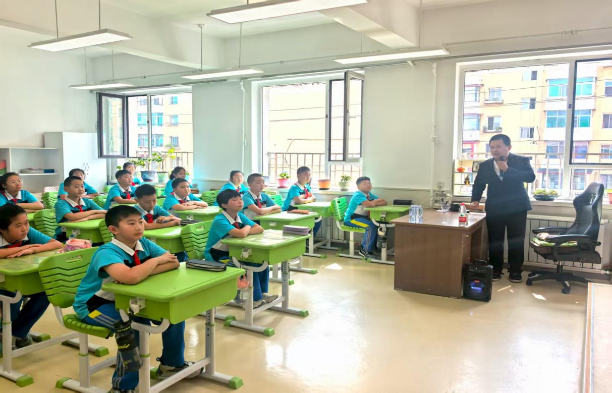 在东风中心小学,杨洪胤从学生们热议的9月3日纪念中国人民抗日战争暨世界反法西斯战争胜利80周年大会讲起,与学生们分享东北抗联和本溪地区的抗战故事,引发学生共鸣,鼓励学生肩负历史重任,怀揣爱国情怀,勇敢前行。