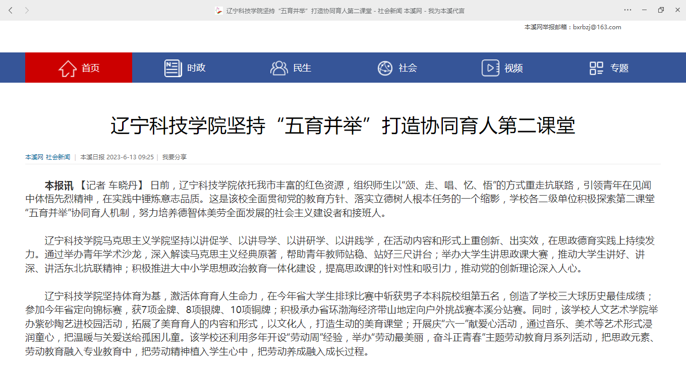 【本溪网】williamhill中国坚持“五育并举”打造协同育人第二课堂