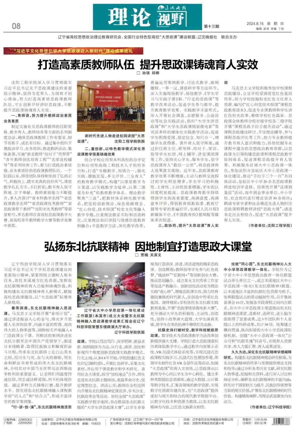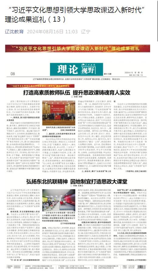【辽沈晚报】【辽沈教育】“习近平文化思想引领大学思政课迈入新时代”理论成果巡礼(13)