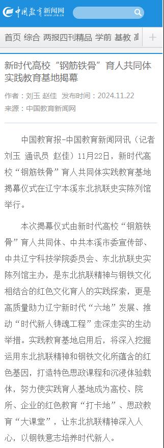 【中国教育网】新时代高校“钢筋铁骨”育人共同体实践教育基地揭幕