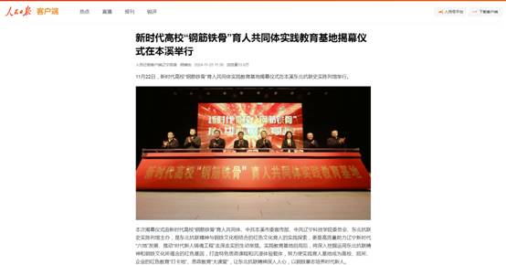 【人民日报】新时代高校“钢筋铁骨”育人共同体实践教育基地揭幕仪式在本溪举行