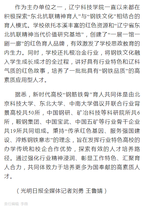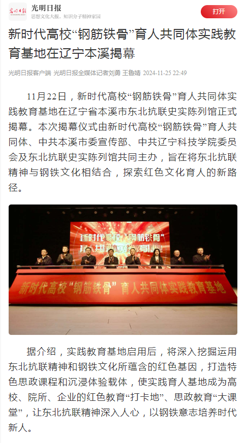 【光明日报】新时代高校“钢筋铁骨”育人共同体实践教育基地在辽宁本溪揭幕