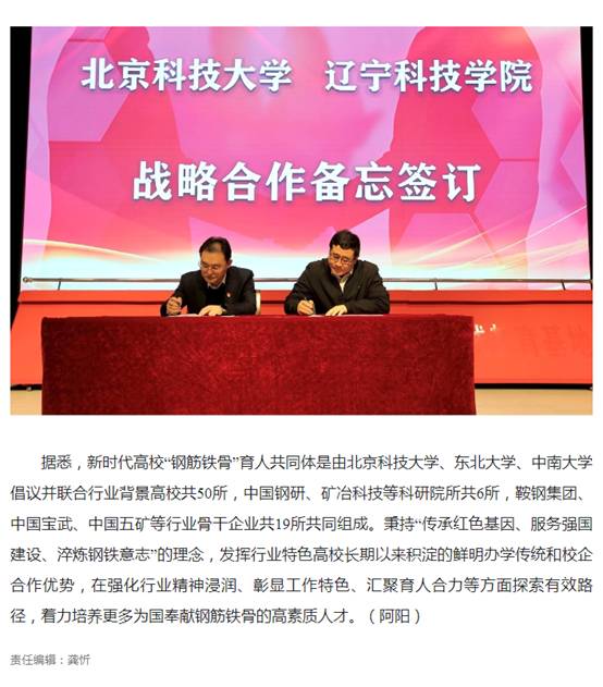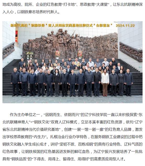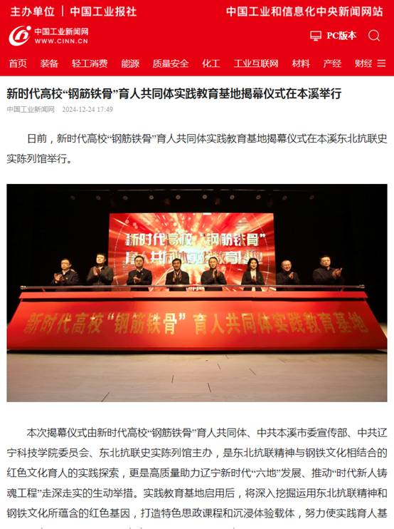 【中国工业新闻网】新时代高校“钢筋铁骨”育人共同体实践教育基地揭幕仪式在本溪举行
