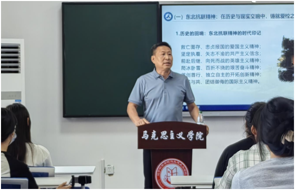 闫海军围绕“爱国、爱校、家国情怀”三个篇章,重点讲述了莘莘学子要如何践行爱国主义精神,为国家繁荣富强贡献力量;要如何传承弘扬东北抗联精神和钢铁精神,铸就爱校之魂、坚韧之魂;要如何践行家国情怀,共绘时代的新篇章。